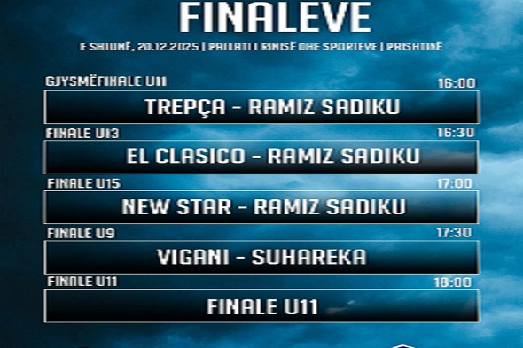 Në Pallatin e Rinisë u zhvillua Prishtina Tournament, më shumë se 10 ditë 31.12.2025 Në Pallatin e Rinisë u zhvillua Prishtina Tournament, më shumë se 10 ditë 31.12.2025 Në Pallatin e Rinisë u zhvillua Prishtina Tournament, më shumë se 10 ditë 31.12.2025 Në Pallatin e Rinisë u zhvillua Prishtina Tournament, më shumë se 10 ditë 31.12.2025 Në Pallatin e Rinisë u zhvillua Prishtina Tournament, më shumë se 10 ditë 31.12.2025 Dita finale e turneut të futsalit “Fadil Vokrri” 20.12.2025 Pallati i Rinisë “Prishtina Tournament 2025” 21-25.12.2025 Turneu përfshin kategoritë: Seniorë, U9–U10, U11, U13 dhe U15 Në Pallatin e Rinisë u zhvillua Prishtina Tournament, më shumë se 10 ditë 31.12.2025 Galeria e Kryeqytetit rikthehet në shtëpinë e saj në hapësirat e Pallatit të Rinisë 28.12.2025 Galeria e Kryeqytetit rikthehet në shtëpinë e saj në hapësirat e Pallatit të Rinisë 28.12.2025 Galeria e Kryeqytetit rikthehet në shtëpinë e saj në hapësirat e Pallatit të Rinisë 28.12.2025 Koncerti i Vitit të Ri nga Filharmonia Pallati i Rinisë e Kosovës 20.12. 2025, Salla e Kuqe Koncerti i Vitit të Ri 2026 Galeria e Arteve Pallati i Rinisë Shkolla e Muzikës Amadeus 15.12.2025 artistik, me rastin e përfundimit të fundvitit 2025 mbajti nje koncert te jashtëzakonshëm gjysmëvjetorit shkollor dhe festave të Pallati i Rinisë Programi tradicional i shkollës LET Center “Fëmijët Festojnë” 16.12.2025 në Sallën e Kuqe Pallati i Rinisë Superliga e Kosovës në Hendboll 14.12.2025 Pallati i Rinisë Edicioni i shtatë i turneut të futsallit “Fadil Vokrri” 15.12.2025 – 20.12.2025 Pallati i Rinisë Superliga e Kosovës në hendboll 14.12.2025 Pallati i Rinisë Aktiviteti i organizuar nga KIDS ACADEMY 13.12.2025 në Sallën e Kuqe Pallati i Rinisë Superliga e Kosovës në hendboll me 12.12.2025 Pallati i Rinisë Ndeshja e Basketbollit mes ekipeve KB “PRISHTINA E RE” dhe KB “KERASAN PRISHTINA” 14.12.2025 Pallati i Rinisë Ndeshje Ndërkombëtare e Basketbollit Sigal Prishtina dhe Opava 09.12.2025 Pallati i Rinisë Përfundon IHF Trophy për zonën evropiane 06.12.2025 në Pallatin e Rinisë Përfundon IHF Trophy për zonën evropiane 06.12.2025 në Pallatin e Rinisë Përfundon IHF Trophy për zonën evropiane 06.12.2025 në Pallatin e Rinisë Përfundon IHF Trophy për zonën evropiane 06.12.2025 në Pallatin e Rinisë NDESHJA E HENDBOLLIT MES KOSOVËS DHE GJEORGJISË 04.12.2025 PALLATI I RINISË NDESHJA E HENDBOLLIT MES BRITANISË SË MADHE DHE BELGJIKËS 04.12.2025 PALLATI I RINISË NDESHJA E HENDBOLLIT MES KOSOVËS DHE BULLGARISË 03.12.2025 PALLATI I RINISË NDESHJA E HENDBOLLIT MES BELGJIKËS DHE GJEORGJISË 03.12.2025 PALLATI I RINISË Festivali Multikulturor “Të Festojmë Ngjashmëritë Tona” 03–04.12.2025 Pallati i Rinisë Festivali Multikulturor “Të Festojmë Ngjashmëritë Tona” 03–04.12.2025 Pallati i Rinisë NDESHJA E HENDBOLLIT MES BULLGARISË DHE BELGJIKËS 02.12.2025 PALLATI I RINISË NDESHJA E HENDBOLLIT MES GJEORGJISË DHE BRITANISË SË MADHE 02.12.2025 PALLATI I RINISË NDESHJA E HENDBOLLIT MES GJEORGJISË DHE BRITANISË SË MADHE 02.12.2025 PALLATI I RINISË NDESHJA E HENDBOLLIT MES KOSOVËS DHE AZERBAJXHANIT 27.11.2025 PALLATI I RINISË NDESHJA E HENDBOLLIT MES KOSOVËS DHE AZERBAJXHANIT 27.11.2025 PALLATI I RINISË NDESHJA E HENDBOLLIT MES BRITANISË SË MADHE DHE BELGJIKËS 27.11.2025 PALLATI I RINISË NDESHJA E HENDBOLLIT MES KOSOVËS DHE BULLGARISE 26.11.2025 PALLATI I RINISË NDESHJA E HENDBOLLIT MES KOSOVËS DHE BULLGARISE 26.11.2025 PALLATI I RINISË NDESHJA E HENDBOLLIT MES KOSOVËS DHE BULLGARISE 26.11.2025 PALLATI I RINISË Ndeshje e hendbollit 26.11.2025 mes Britanisë së Madhe dhe Azerbajxhanit Pallati i Rinisë Ndeshje e hendbollit 26.11.2025 mes Britanisë së Madhe dhe Azerbajxhanit Pallati i Rinisë Ndeshje e hendbollit 26.11.2025 mes Britanisë së Madhe dhe Azerbajxhanit Pallati i Rinisë Ndeshje e hendbollit 26.11.2025 mes Britanisë së Madhe dhe Azerbajxhanit Pallati i Rinisë Ndeshje e hendbollit 26.11.2025 mes Britanisë së Madhe dhe Azerbajxhanit Pallati i Rinisë AKTIVITETET SPORTIVE – HENDBOLL PALLATI I RINISË KAMPIONATI MBARËKOMBËTAR I KARATESË 2025 ME 22.11.2025 PALLATI I RINISË KAMPIONATI MBARËKOMBËTAR I KARATESË 2025 ME 22.11.2025 PALLATI I RINISË KAMPIONATI MBARËKOMBËTAR I KARATESË 2025 ME 22.11.2025 PALLATI I RINISË